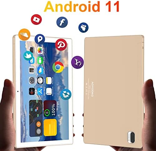 AOYODKG Tablet 2 in 1, 10.1 inch Android 11 Tablet with Keyboard, Case Mouse, 4GB RAM+64GB ROM(256GB Expand), Quad-Core Processor, 1280×800 IPS HD Display, Games, Wi-Fi, Bluetooth, AYO-A10 (Gold)