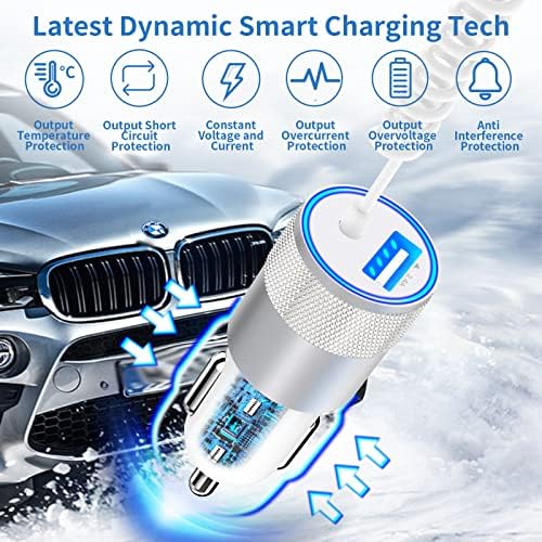2. BARMASO’s 4.8A Dual USB Smart Power Fast Car Charger with Built-in 6FT Coiled Lightning Cable + 6FT Coiled Lightning to USB Cable.