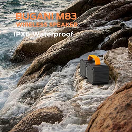 Durable and Portable – The smooth rubber appearance protects BUGANI M83 bluetooth speaker from scratches and impacts. Carrying your music around with the TPU handle. IPX6 waterproof speakers are perfect for pool, beach parties