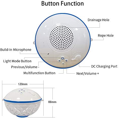 【Bluetooth Speakers with Lights】① Our floating bluetooth speaker has long battery playtime up to 8 hours after a full charge. This waterproof pool bluetooth speaker is rechargeable and requires no additional batteries. ②The led bluetooth speaker can provide 7 different color changing themes and slow flashing, fast flashing light modes. The pool lights and speakers lights up and makes your night more colorful and happy.