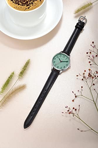 ❤Round green dial with easy-to-read Arabic numeral scale make the timepiece keeping good time. Red second hand is elegant and eye-catching, silver case comes with soft and wear-resistant black watch band, love at first sight.