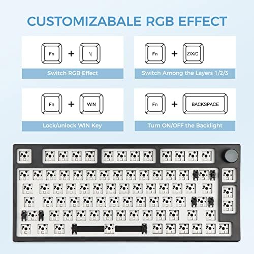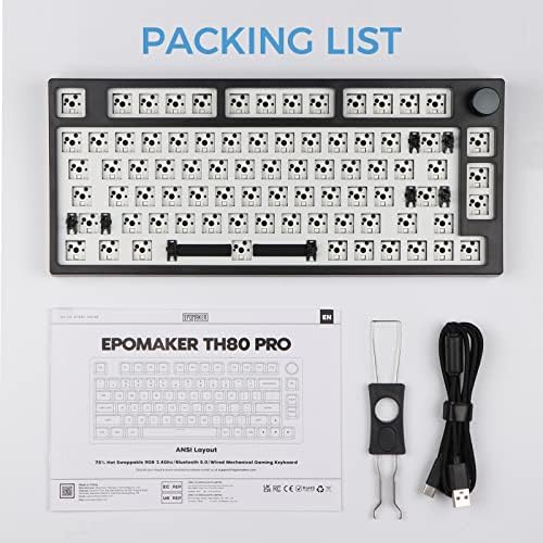 EPOMAKER TH80 Pro 75% 80 Keys Hot Swap Bluetooth 5.0/2.4GHz/Wired Mechanical Keyboard PCB Mounting Plate Kit with Dampener Foams, South-Facing LEDs, Compatible with 3/5Pin Switches(TH80 Pro Black)