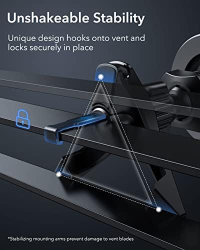 Unshakeable Stability: unique design hooks onto vents and locks firmly in place while mounting arms further enhance stability, ensuring peace of mind and a steady screen over even the bumpiest roads