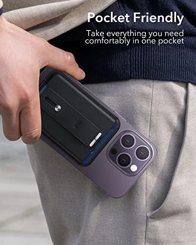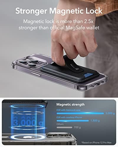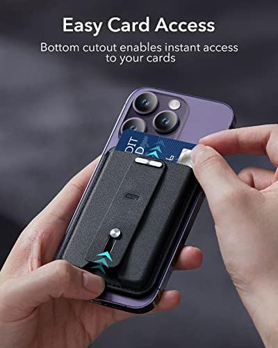 ESR MagSafe Wallet (HaloLock), iPhone Wallet with Secure-Grip Finger Loop, Magnetic Wallet for iPhone 14/13/12 Series, Not for 13/12 Mini, 3-Card Holder, Vegan Leather, MagSafe Accessories, Black