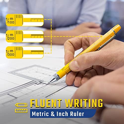 2022 CREATIVE DESIGN 6 IN 1 MULTITOOL POCKET PEN: SOOFUN multifunction tool pen comes with 6 handy functions and has a unique patent design. The EDC ballpoint tool pen with two extra refills writes smoothly for a remarkable experience and meets the requirements for scales in drawing work. The bright LED light, magnetic head, a ruler with 4 scales(mm/inch), Phillips screwdriver and bubble level can meet your work needs! Like home improvement, construction, electrical, office, repair, DIY, etc.