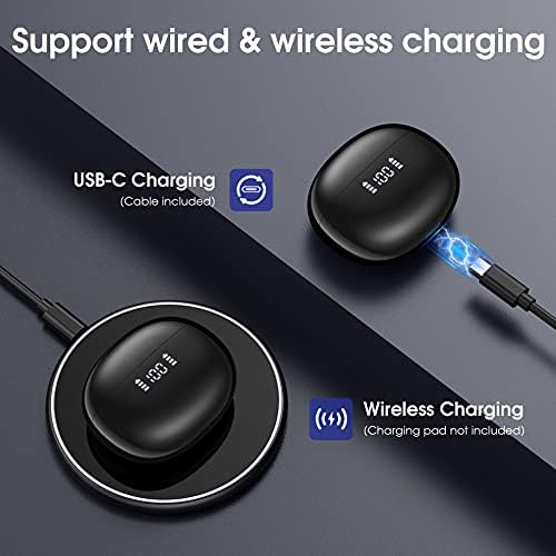 [Wireless Charging & Digital Battery Display] Apart from charging by the supplied Type-C cable, you can also place the charging case on a wireless charging pad to get charge easily. Besides, built-in dual LED display, these allow you to grasp the power of the charging case and the charging status of the earbuds in real-time.