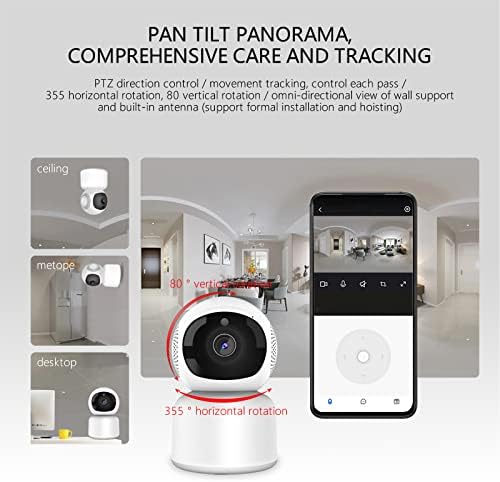 【355° View PTZ Security Camera,Reduce Blind Zone】Pan 355°and tilt 80°,the wireless WiFi ptz camera allow you to monitor without blind area