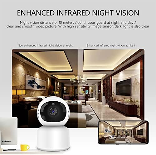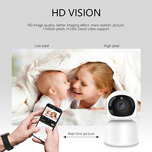 <p>Compact Indoor Plug-In Smart Security Camera,HD Video,Night Vision,Motion Detection,Two-Way Audio,Easy Set Up,Smart Wifi Camera</p><p><br></p><p>Set up in minutes — plug in the camera, connect it to wifi, and follow the instructions in the free app</p><p>Include 1 Mini camera, mounting kit,USB cable, and power adapter</p><p>Supports micro SD cards up to 128 GB (Not include)</p><p>Supports 2.4G Wifi,not support 5G Wifi</p><p>Supports motion detection recording and push message to App</p><p><br></p><p><br></p><p> Product parameters:</p><p><br></p><p>Lens: 3.6mm</p><p>Resolution: 720p (APP display 1080p, video recording resolution 1920x1080p)</p><p>Video compression: H.264 video coding</p><p>Pan tilt angle: 355 ° horizontal and 70 °vertical</p><p>White light: None</p><p>Infrared lamp: 6 infrared lamps</p><p>Two way intercom: support two-way voice intercom</p><p>Remote control: support remote control of mobile phone and PC</p><p>Device S-Haring: SHAR-E devices through Q-R code and account</p><p> </p><p>Cloud storage: support cloud storage function for 7×24 hours</p><p> </p><p>TF card compatibility: support 8-128gbtf card (not included), 70% automatic coverage and circular recording; Support offline video recording</p><p> </p><p>Security protection: password mechanism + sharing mechanism</p><p> </p><p>System language: automatically adjust the language with the mobile phone system language</p><p> </p><p>Network protocol: RTSP / FT-P / PPPoE / DHCP / DDNS / NTP / UPnP and other network protocols</p><p> </p><p>Antenna: built in antenna</p><p> </p><p>