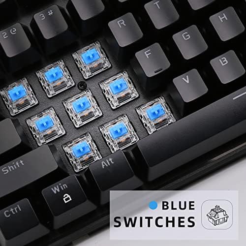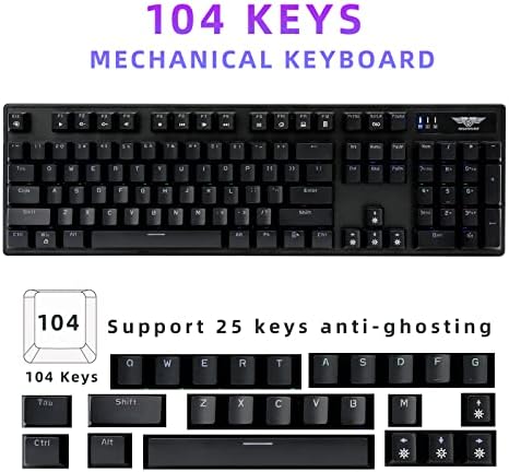 [Mechanical Full Size Keyboard] This gaming keyboard is a full size keyboard that includes all the features you need for gaming and everyday work, such as multimedia, number area and arrow keys. 25 anti-ghost keys to meet the operating needs of most games and offices.