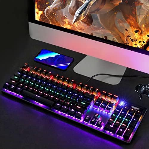 NEWMEN GM325 Gaming Keyboard Mechanical Keyboard,LED Backlit Wired 104 Keys Mechanical Gaming Keyboard,Anti-ghosting,Macro Programmable PC Gaming Keyboards for Windows Computer Laptop(Blue Switch)