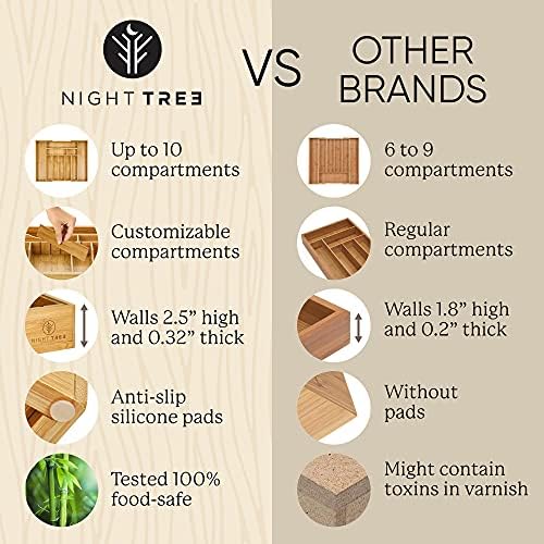 YOUR SATISFACTION GUARANTEED – NIGHT TREE is a company with heart. We care about the environment and we most definitely care about our customers. We emphasize quality of workmanship and materials and we do our best so that you are always satisfied. If there are any issues with your drawer organizer, please just contact us and we will work it out for you. BUY YOURS and enjoy a new level of order and organization in your life.