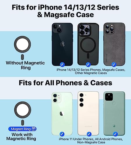 [Designed for iPhone and MagSafe]: The Tesla phone holder is specifically designed for iPhone 14/13/12 series phones and MagSafe phone cases, as well as other magnetic cases. The magnets are precisely arranged to match the built-in magnets of the iPhone, allowing for quick and accurate attachment to your iPhone. We also provide a magnetic ring made with iPhone’s original magnets, compatibility with all iPhones, Android phones, and non-magnetic phone cases.