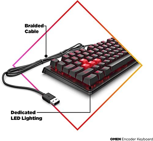 Prevent miss-keying and watch every key glow a deep red with its own dedicated LED. Command a flawless symphony of keystrokes with the OMEN encoder keyboard, designed with accurate 100% anti-ghosting n-key rollover. Cherry MX Brown and Cherry MX Red mechanical key switches give you the agility you need to maneuver ahead of the competition. To help you perform with more accuracy, Each key is LED-backlit with a deep red so that you never miss your shot at success. Omen Command center allows you to easily control lighting effects, brightness, single key on/off, media keys, macros with on-the-fly settings. Easily control lighting effects, brightness, single key on/ off, media keys, macros with on-the-fly settings and OMEN Command Center. Forget cable management—braided sheathing enhances the USB cord’s durability and minimizes kinking. 2-ways adjustable legs meet your desired wrist angle to help prevent cramps and discomfort. Easily control lighting effects, brightness, single key on/off, media keys, macros with on-the-fly settings and OMEN Command Center.