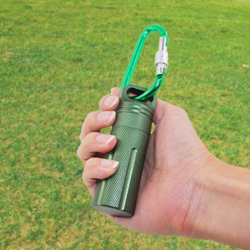 SENHAI Air-Tight EDC Accessory Case Waterproof Pill Capsule Fob Bottle, 2 Pack Aluminum Outdoor Dry Containers Match Seal Storage Case, with 2 Locking Carabiners – Black, Green