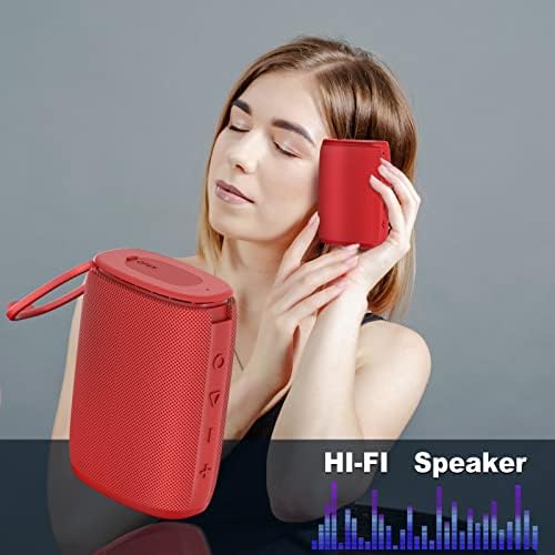 Sewowibo IPX7 Waterproof Shower Bluetooth Speaker, Portable Wireless Outdoor Speaker with HD Sound Support TF Card Built-in Mic,Lanyard for Home, Pool, Beach, Boating, Hiking 15H Playtime – Red