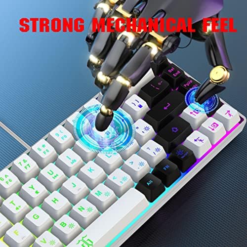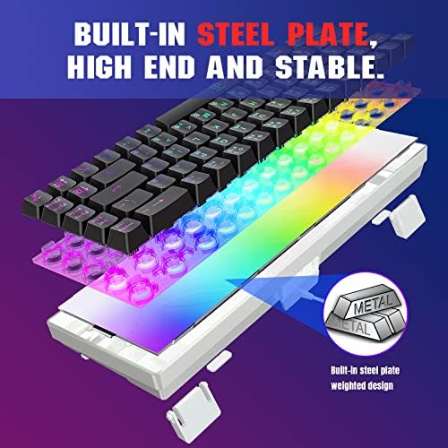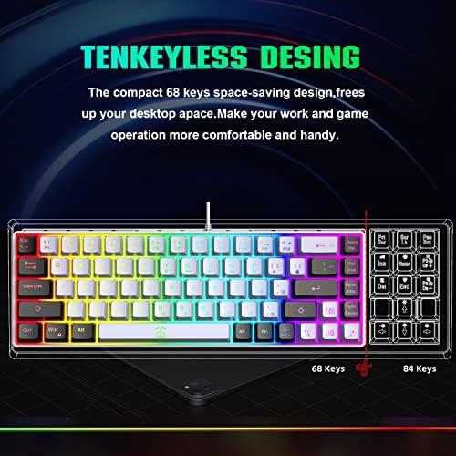 Snpurdiri 60% Gaming Keyboard, RGB Backlit Mini Keyboard,Built-in Steel Plate, Membrane Keyboard but Super Mechanical Feel for Windows PC Gamers(68 Keys,White-Black)