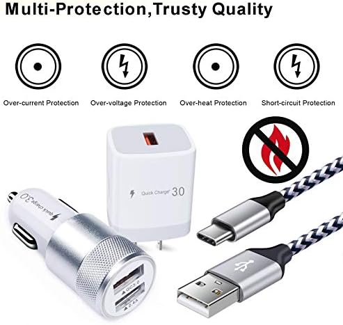 QC 3.0 Car Charger +18W Quick Charge 3.0 Wall Charger+ 2Pack 3FT Type-C Cables