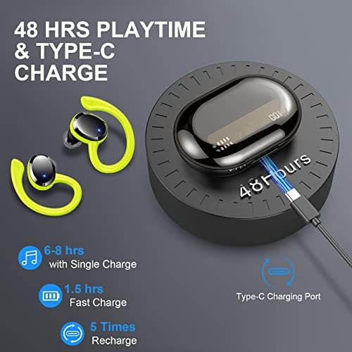 Dual LED Ditgtal Display and 48 Hrs Playtime: In ear wireless earphones charging case with led power display shows remaining power in percentage. Charging case presents its battery from 1%-100% to let you know the current power status of your running headphones and charging case anytime anywhere. Up to 6-8 hours playtime of normal usage on a single charge and boost that to 48 hours playtime with the 800mah compact charging case. With USB-C quick charge, it only takes 1.5 hours to charge the case.